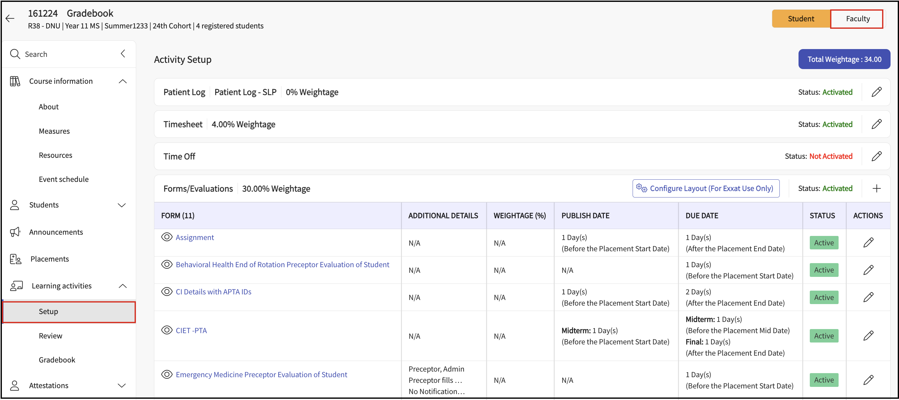 Click Faculty in the top right of the Learning Activity Setup page to switch to the Faculty tab.