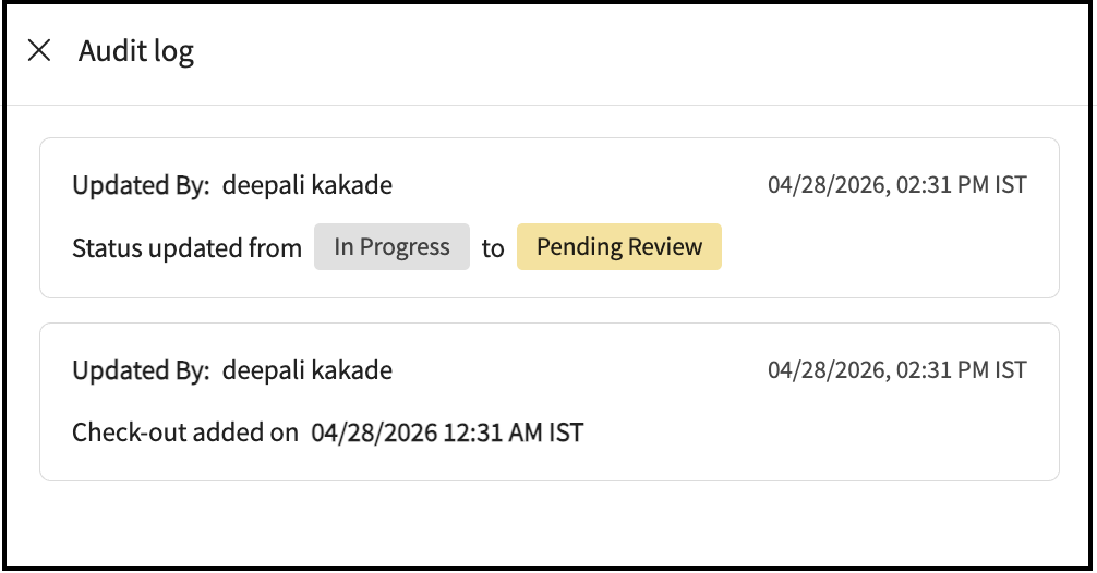 Every entry contains a complete change history. Click the audit log icon next to each entry to see the change history.