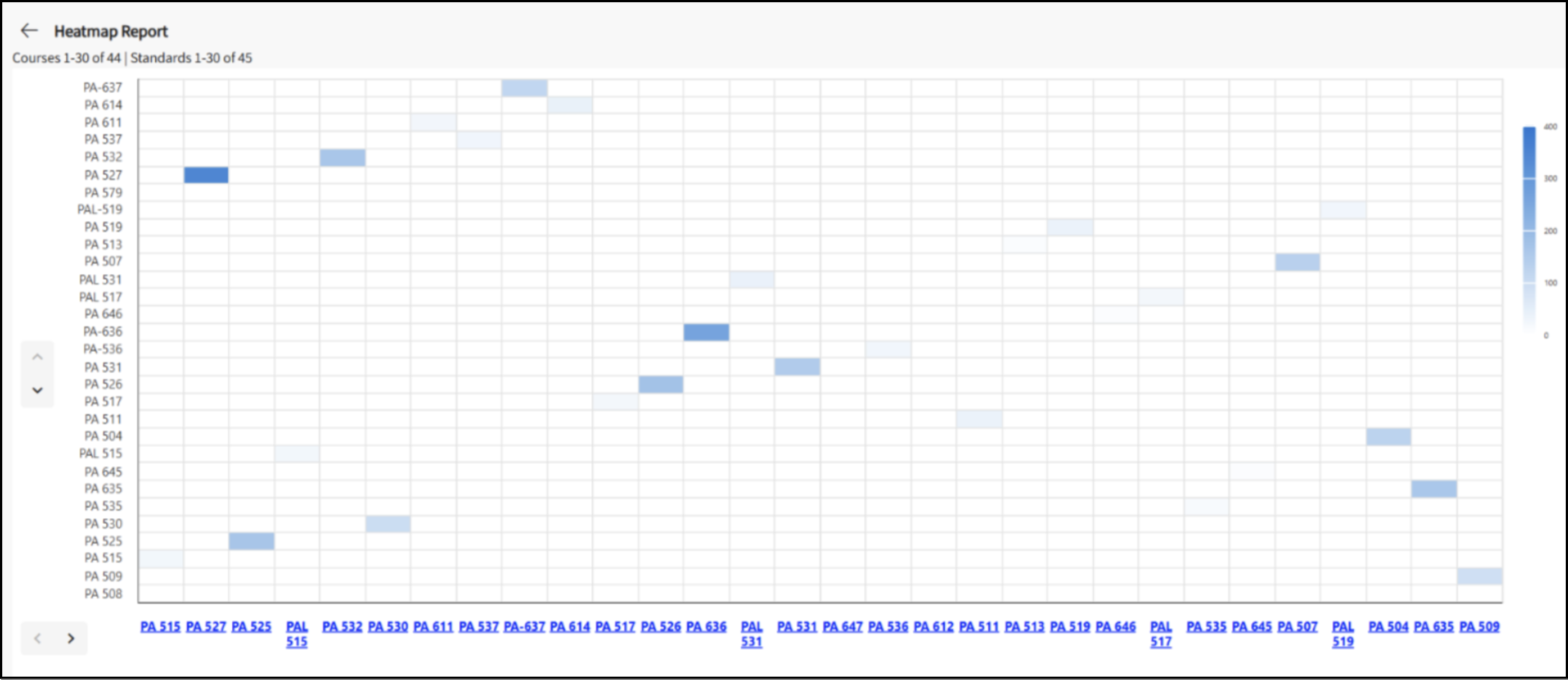 By providing a high-level visual snapshot of curriculum alignment, the Heatmap Report helps programs quickly assess how well their courses support ARC-PA standards.