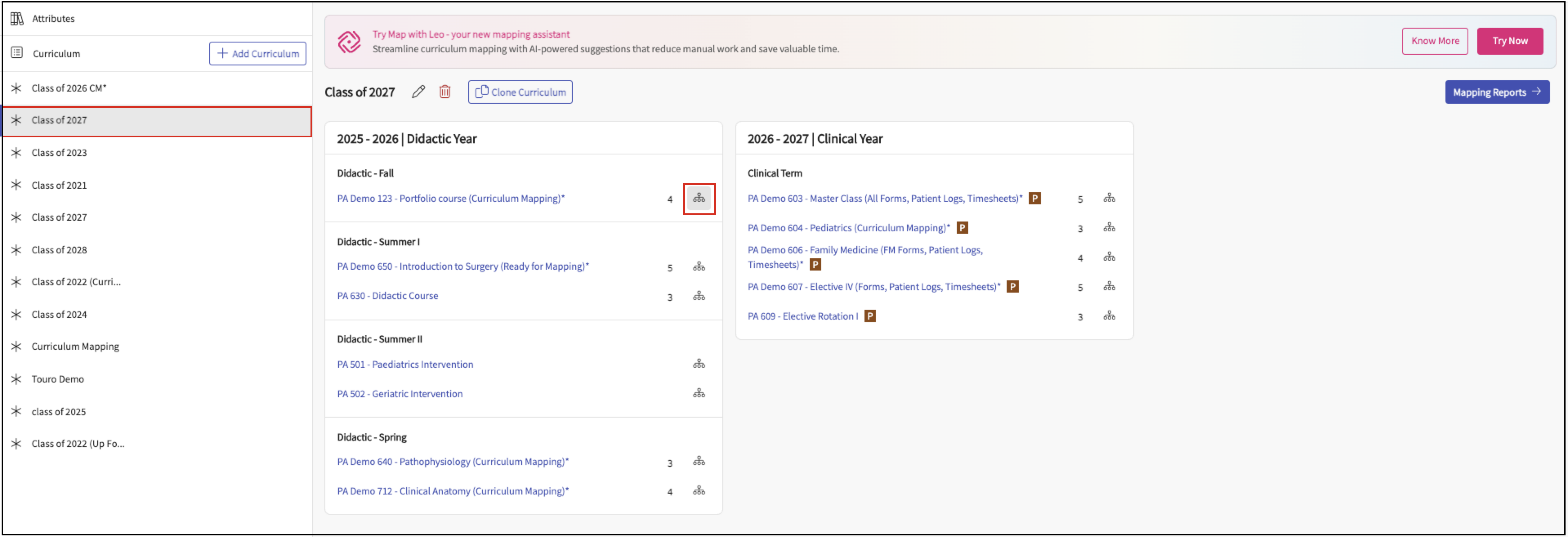 Navigate to the curriculum and click the Mapping icon for the course.