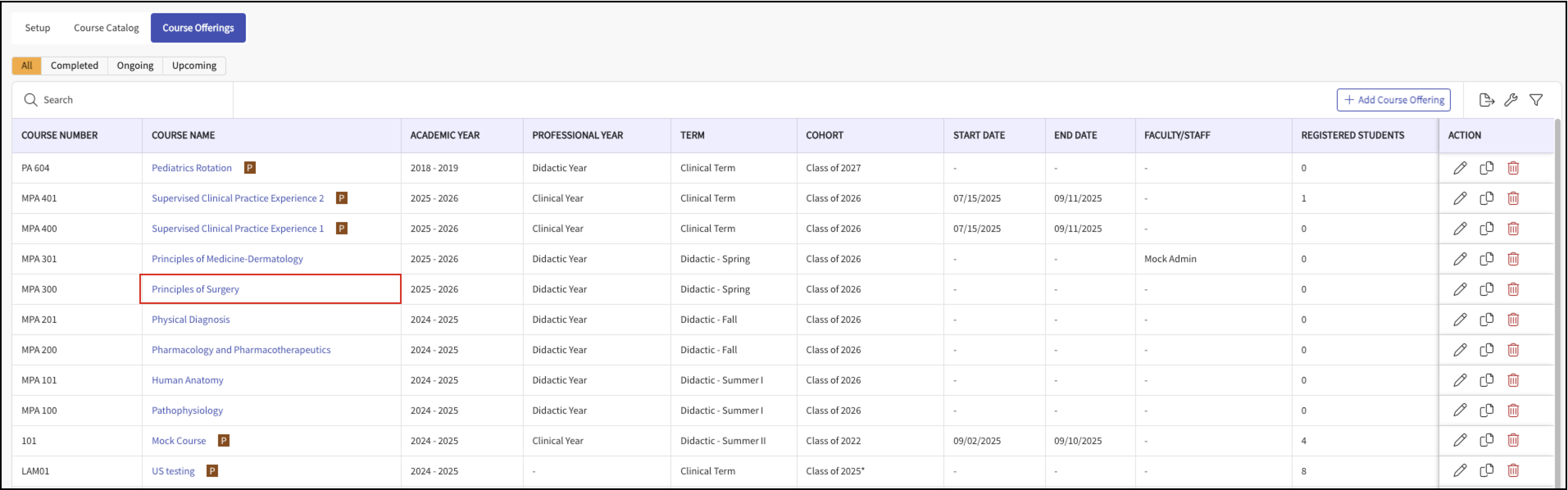 From the Exxat Prism Dashboard or the Hamburger menu, go to Courses.
