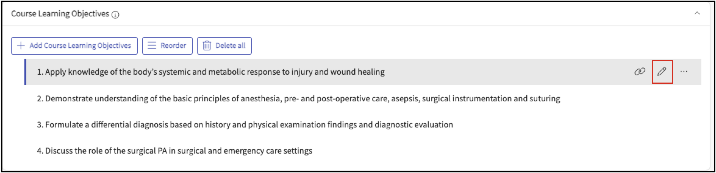 Click the Edit icon next to the existing learning objective.