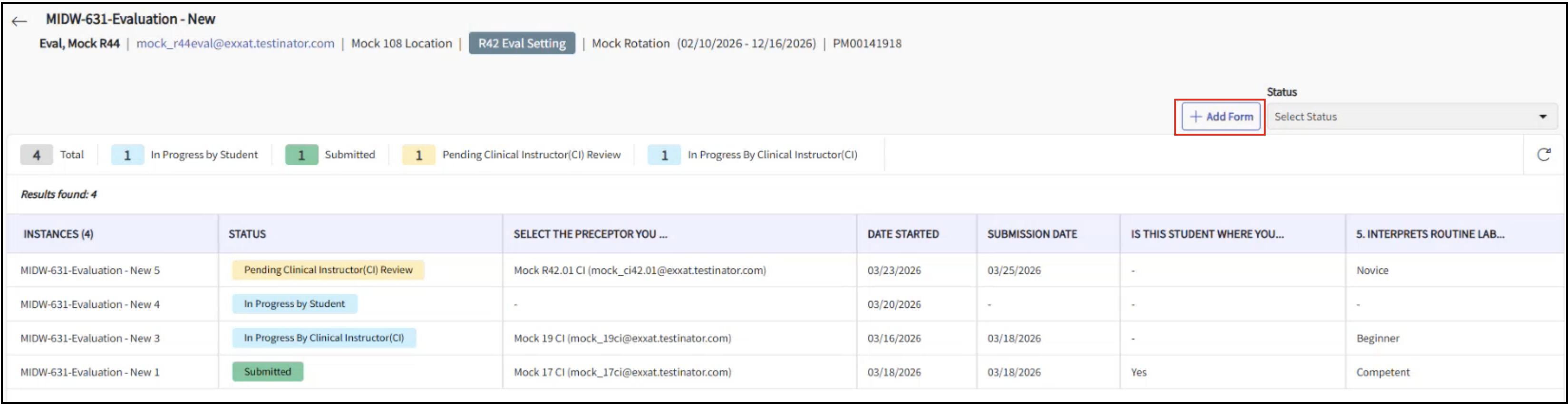 - A placement feedback form submitted multiple times during a rotation