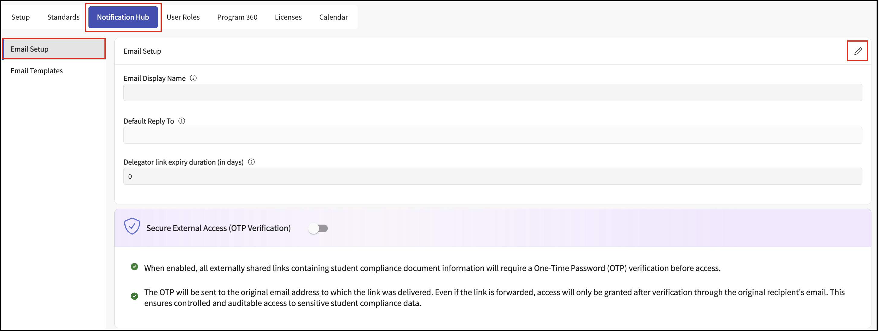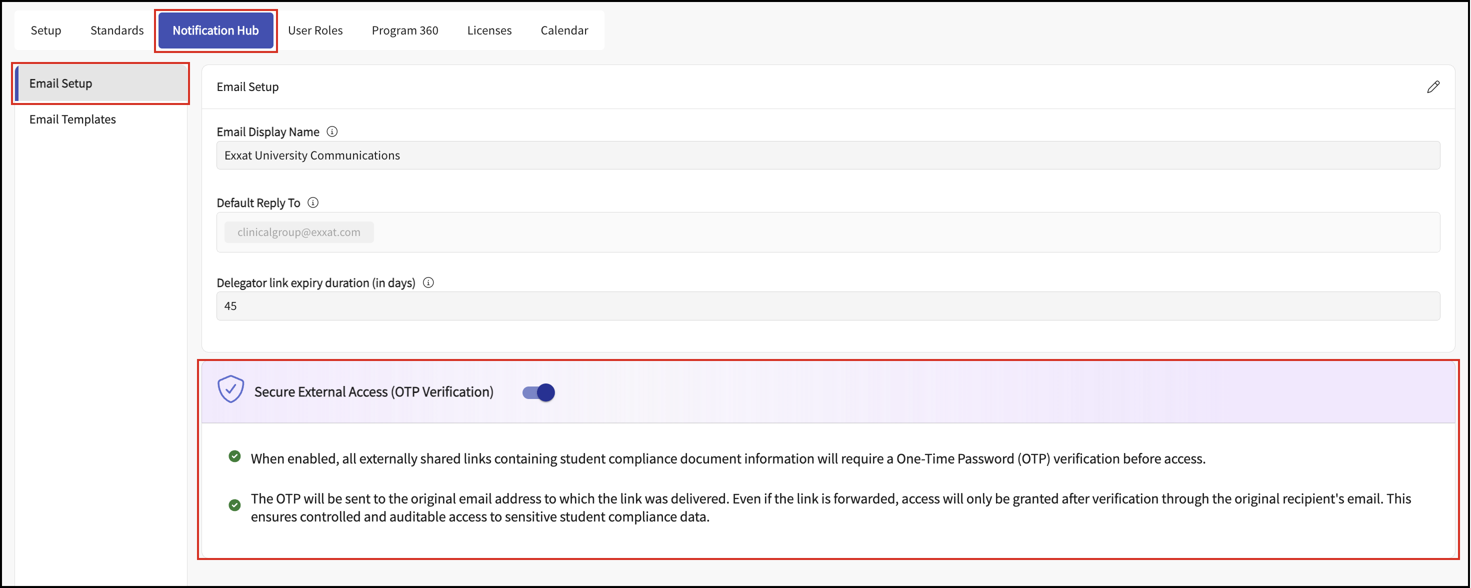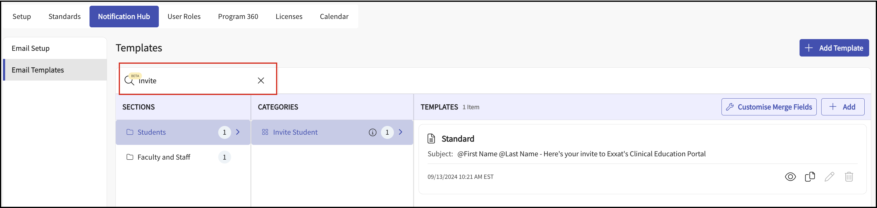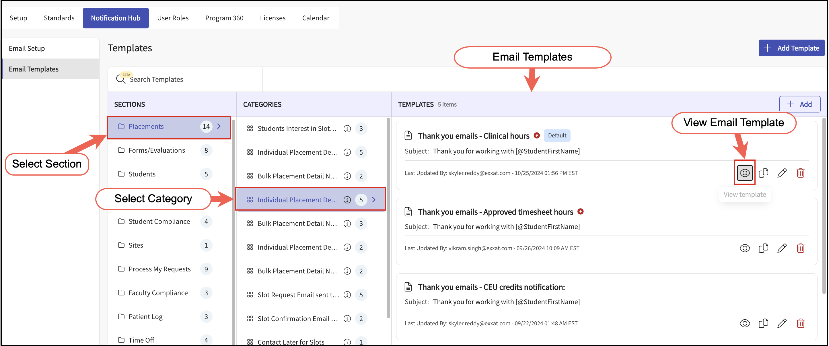 The Notification Hub in Exxat Prism centralizes all email-related configurations and templates for your program, allowing you to manage communication from one place.