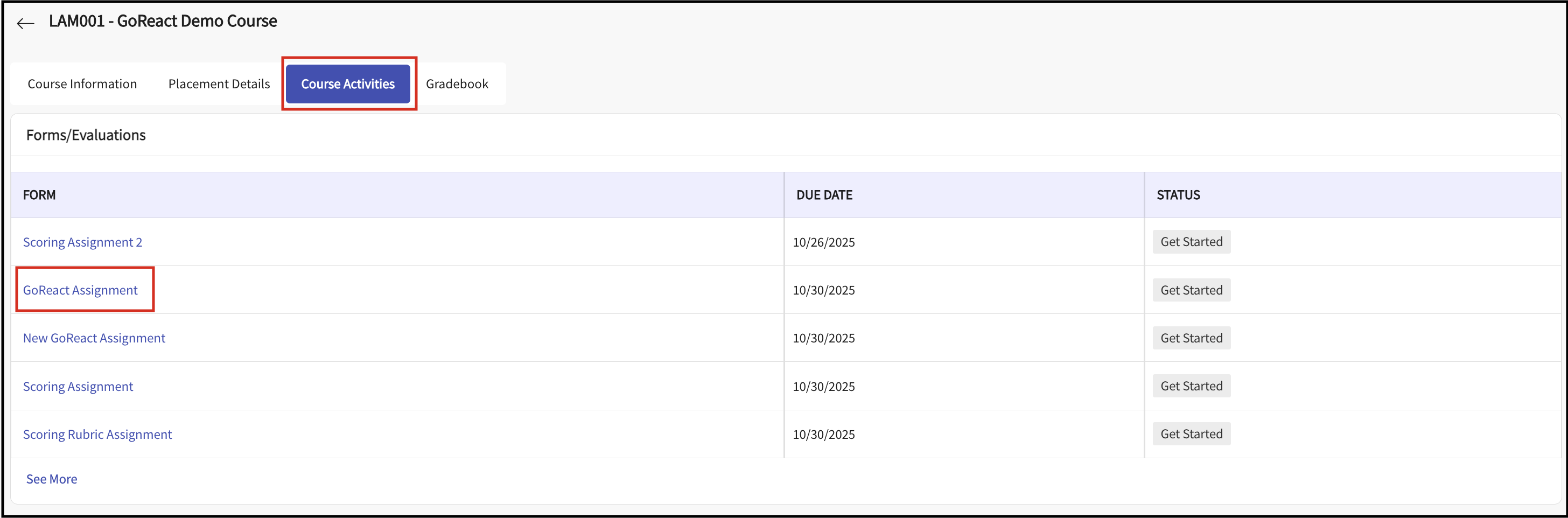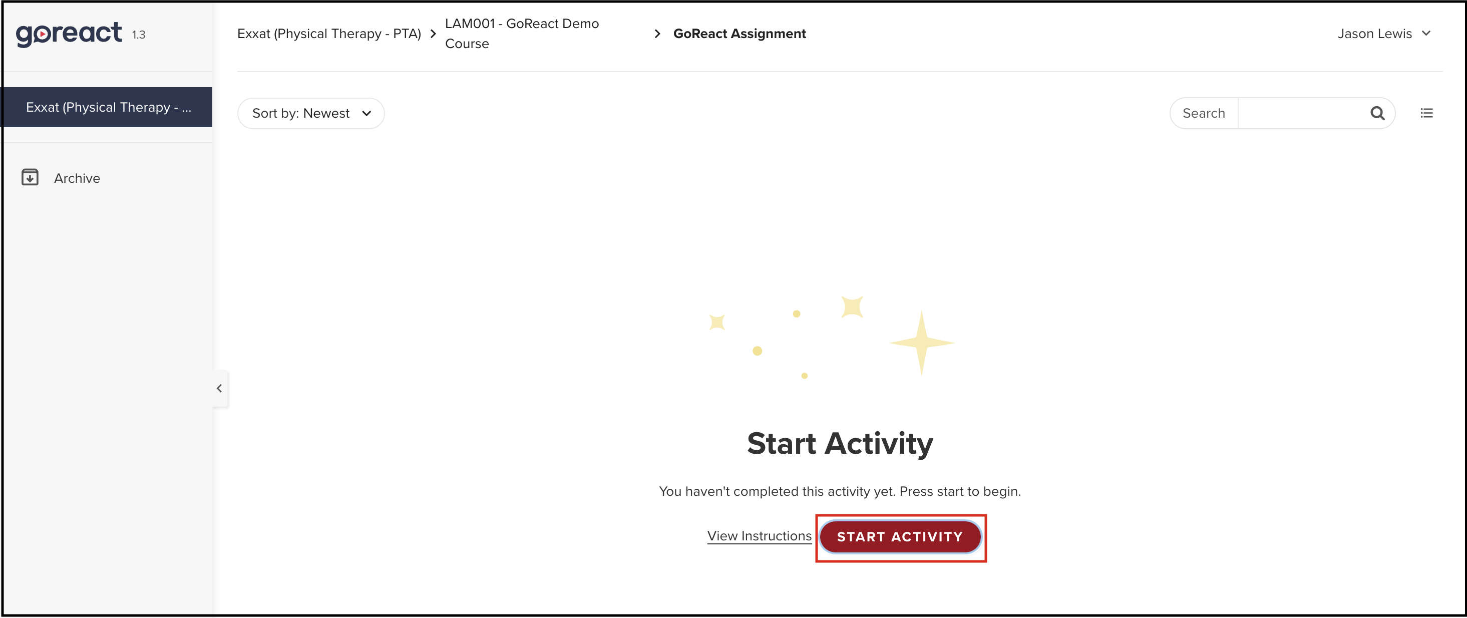 This takes you to the GoReact Page. - In the GoReact click Start Activity to begin your assignment.