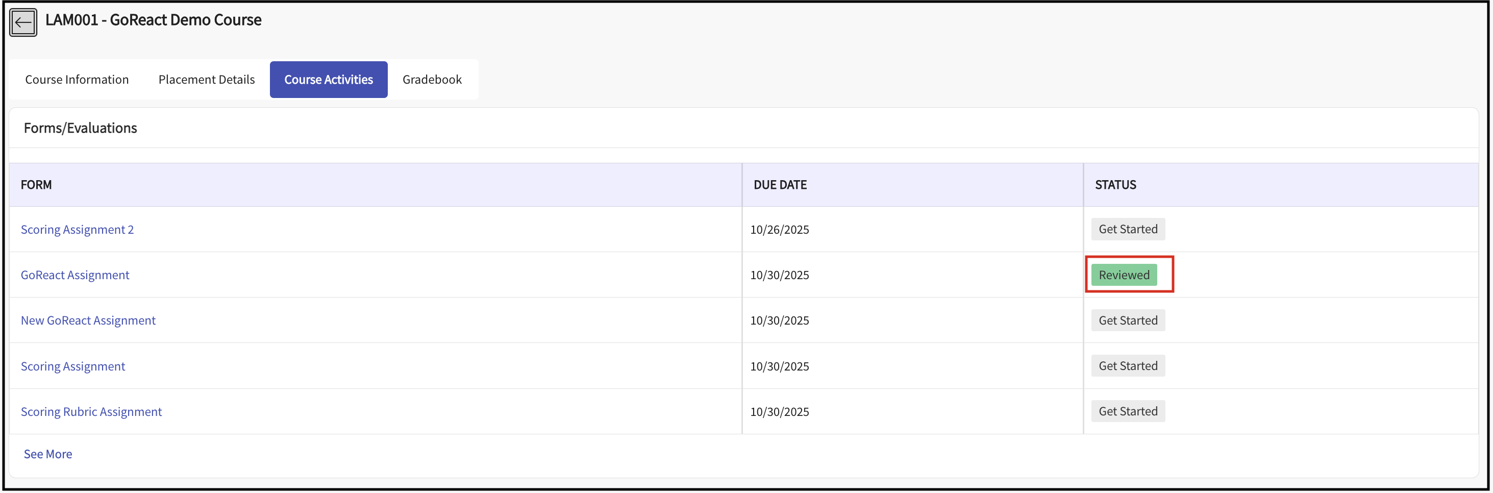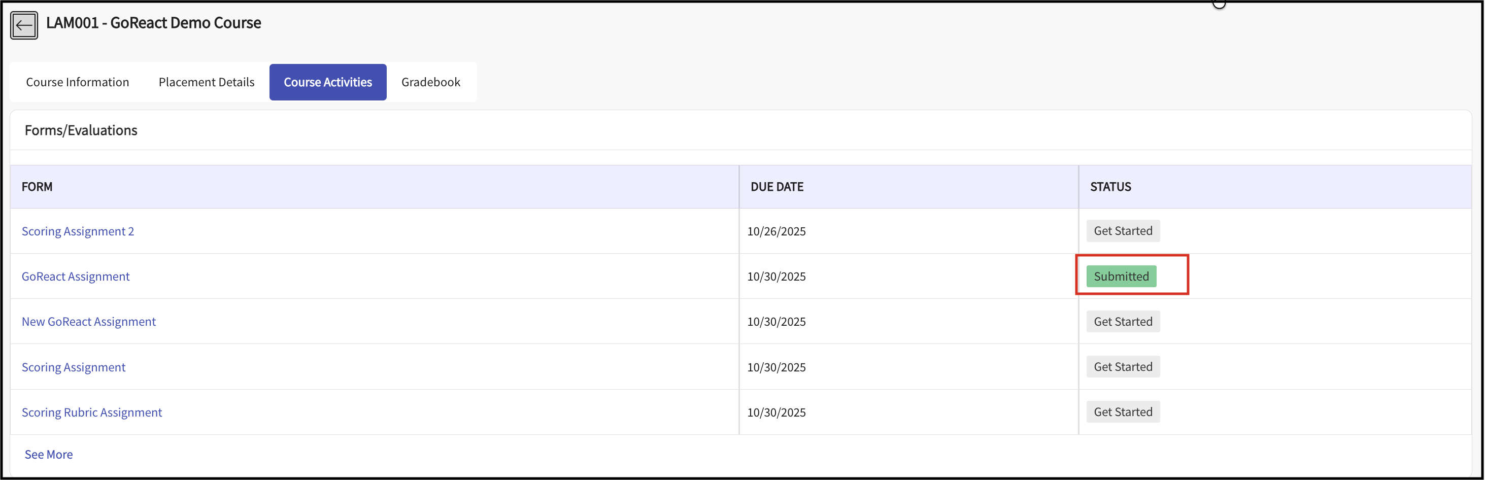 - Navigate to the Course Activities tab and Click the relevant activity/form name to view details.
