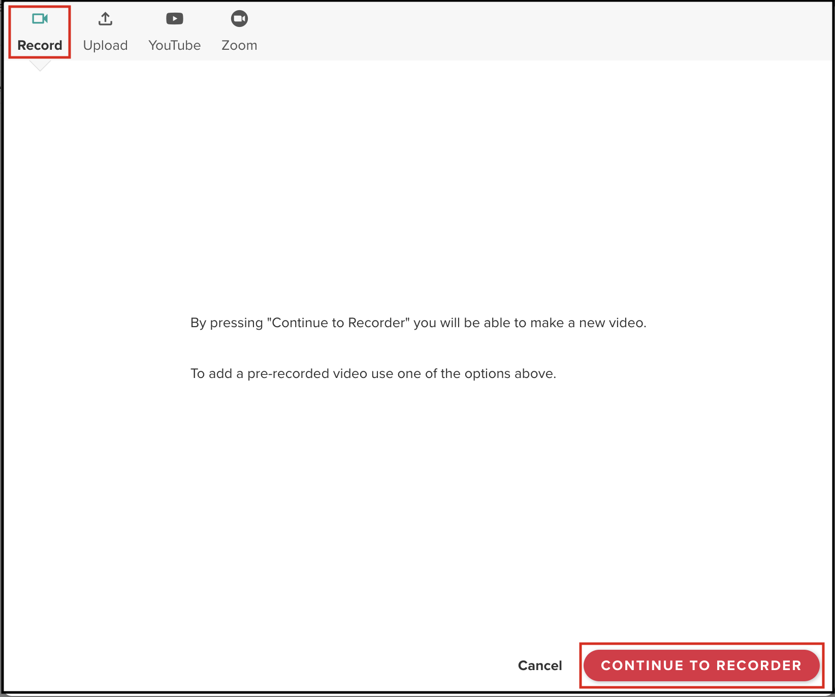 - Click Record and select Continue to Recorder to start capturing the video