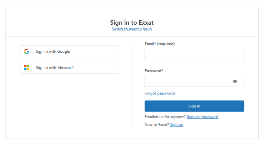 ⚠️ Important Note: Your Exxat Help Center account is separate from your main Exxat PRISM login. Even if you use the Exxat product regularly, you may still need to sign up for a Help Center account or request a password if this is your first time logging into the support portal.