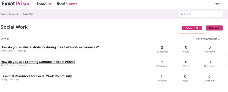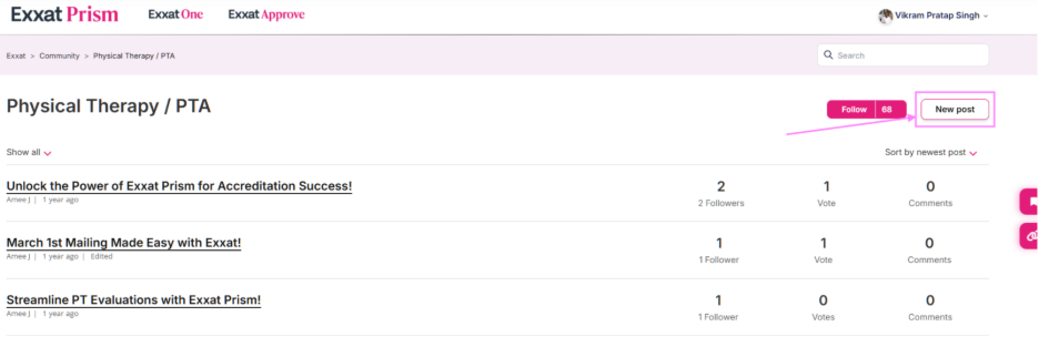 Instructions on Login & Posting to Exxat Prism Community