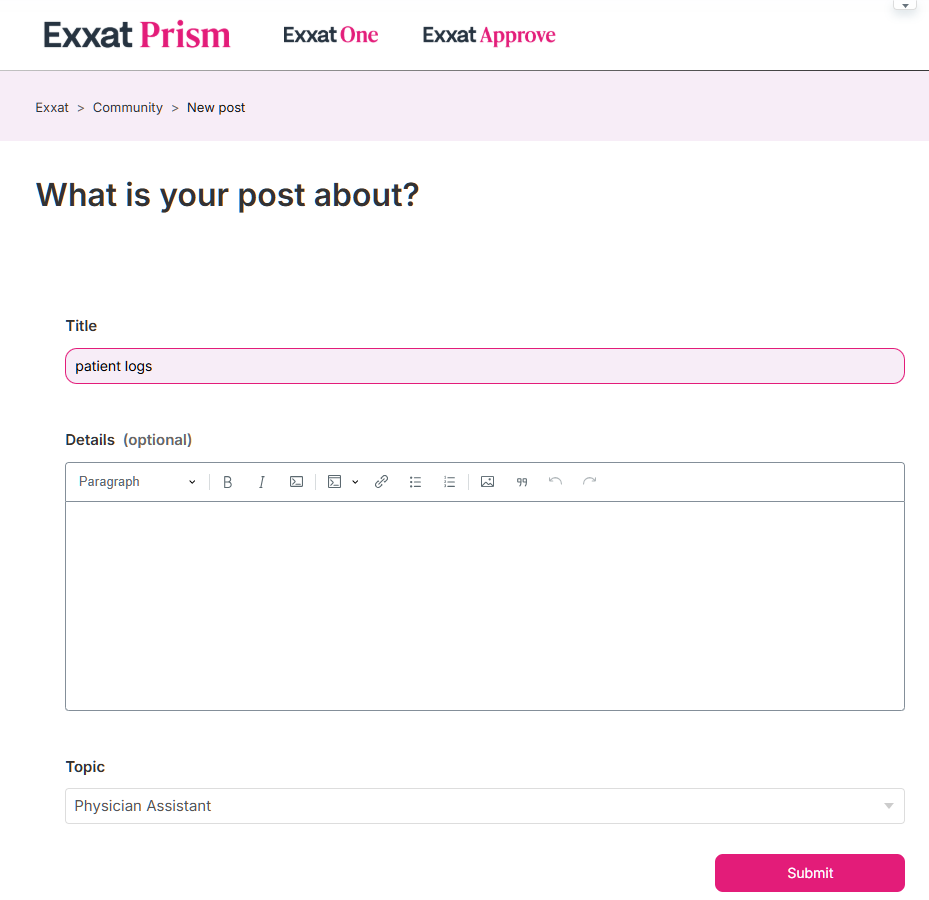 Don’t be afraid to start the discussions on industry topics and Best Practices! Please note that community members must be an Exxat Prism user in order to log in to post.